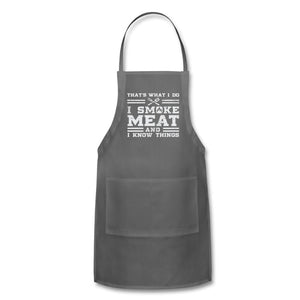 Over-the-head and around-the-waist adjustable drawstring makes this apron one size fits all. Made from 100% cotton, 3.2oz fabric, this 27.5 inches wide by 30 inches apron is made to fit Pitmasters of every size from slim to husky. Includes a split front pocket for storage of cooking utensils, towel, etc... Spot cleaning recommended.