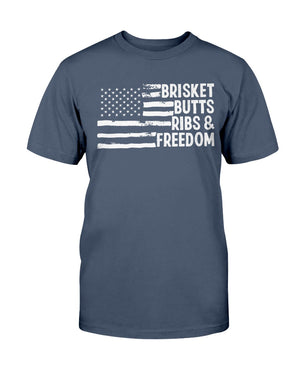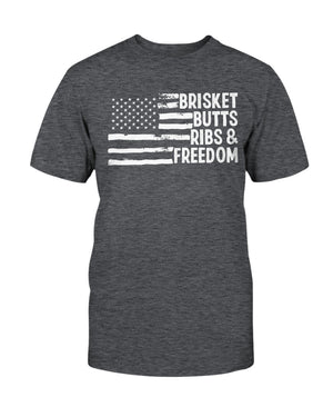 What more could a man ask for when it comes to grilling gifts? Briskets, Butts, Ribs, Freedom is what's on the mind of every meat smoker and now available to be worn on his chest as symbol of pride as his favorite bbq shirt. This grilling shirt is one of the top gifts for dad, grilling gift for your husband, as well as one of our most popular barbecue shirts for men of all ages.